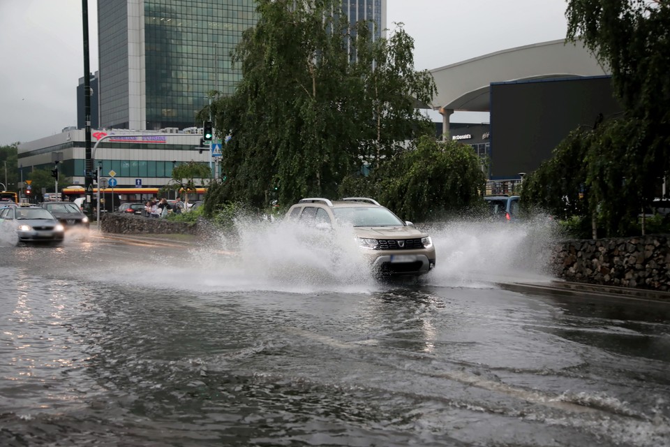Większość warszawskich ulic jest zalanych wodą, bo studzienki kanalizacyjne nie warszawa burza. Straż pożarna interweniowała ponad 100 razy.
